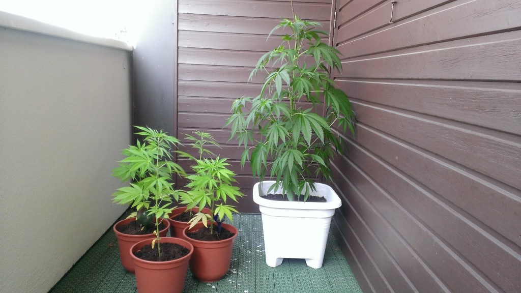 Die kleinen, mickrigen Pflanzen sind zum gleichen Zeitpunkt gepflanzt worden, wie die große, starke und vitale Pflanze. Sorte aller 5 Pflanzen identisch. Pflanzdatum: identisch. Substrat: Identisch.